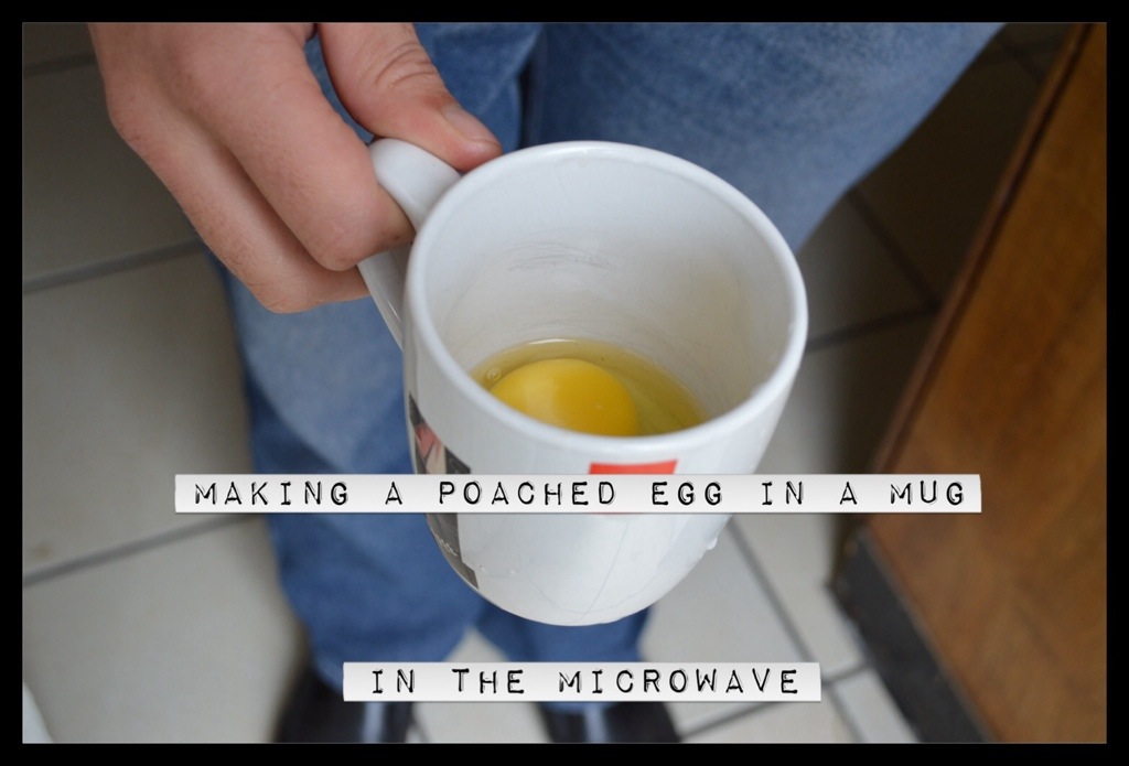 1. Break an egg into a mug.