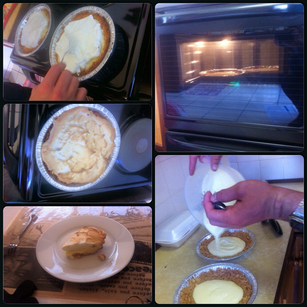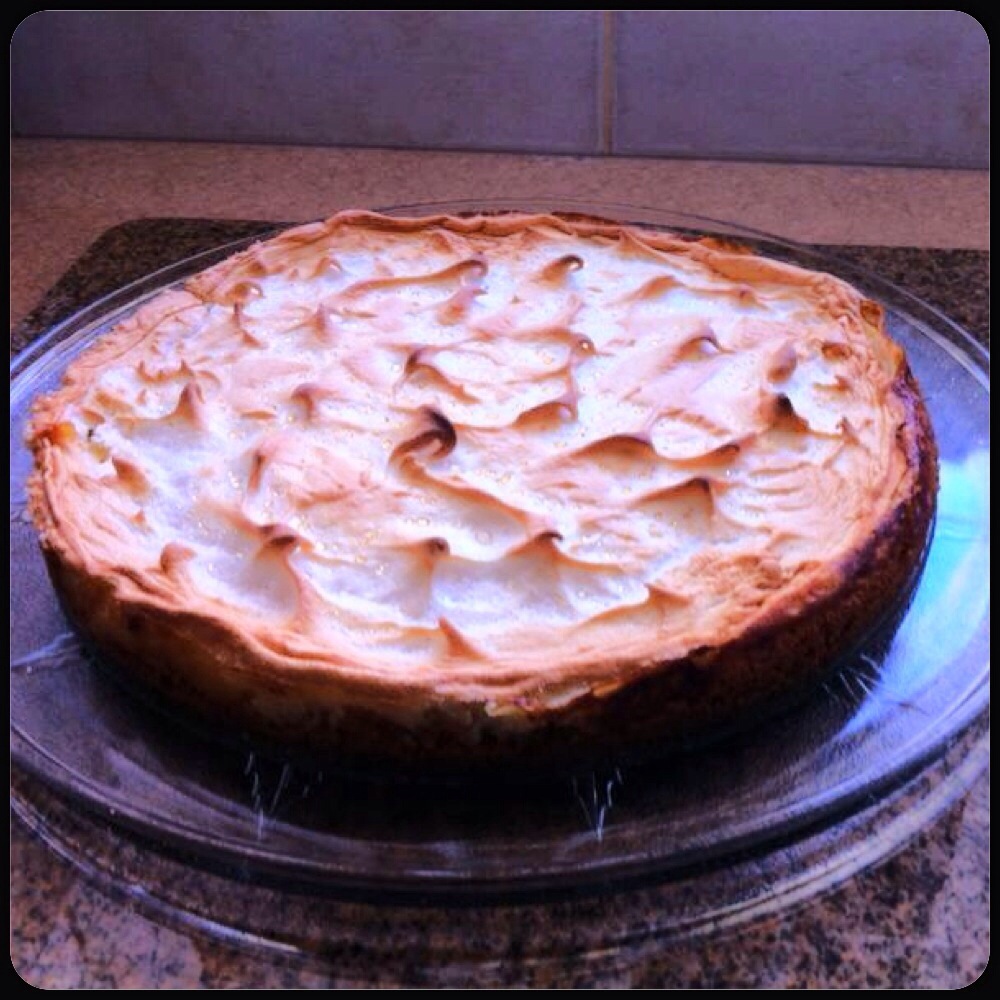 Whisk the egg whites until soft peaks form. (If you have even a bit of egg yellow in the bowel it won’t work.). Gradually whisk in caster sugar. Spoon this meringue mixture over the pie.