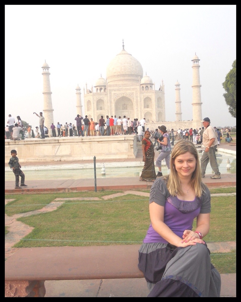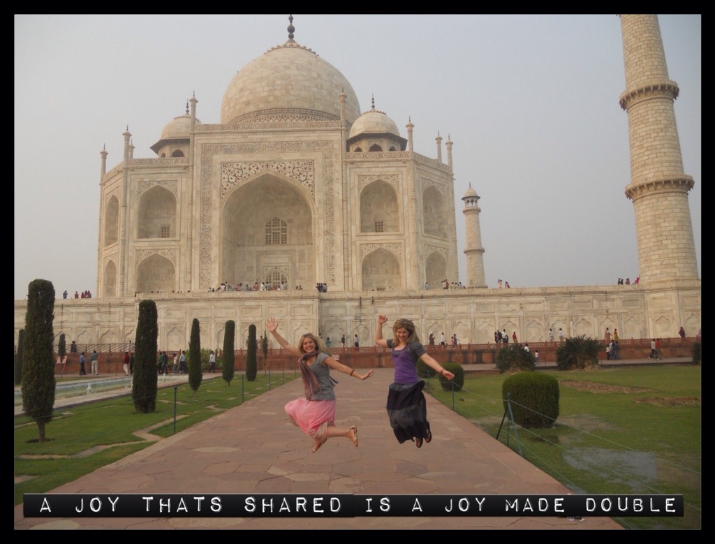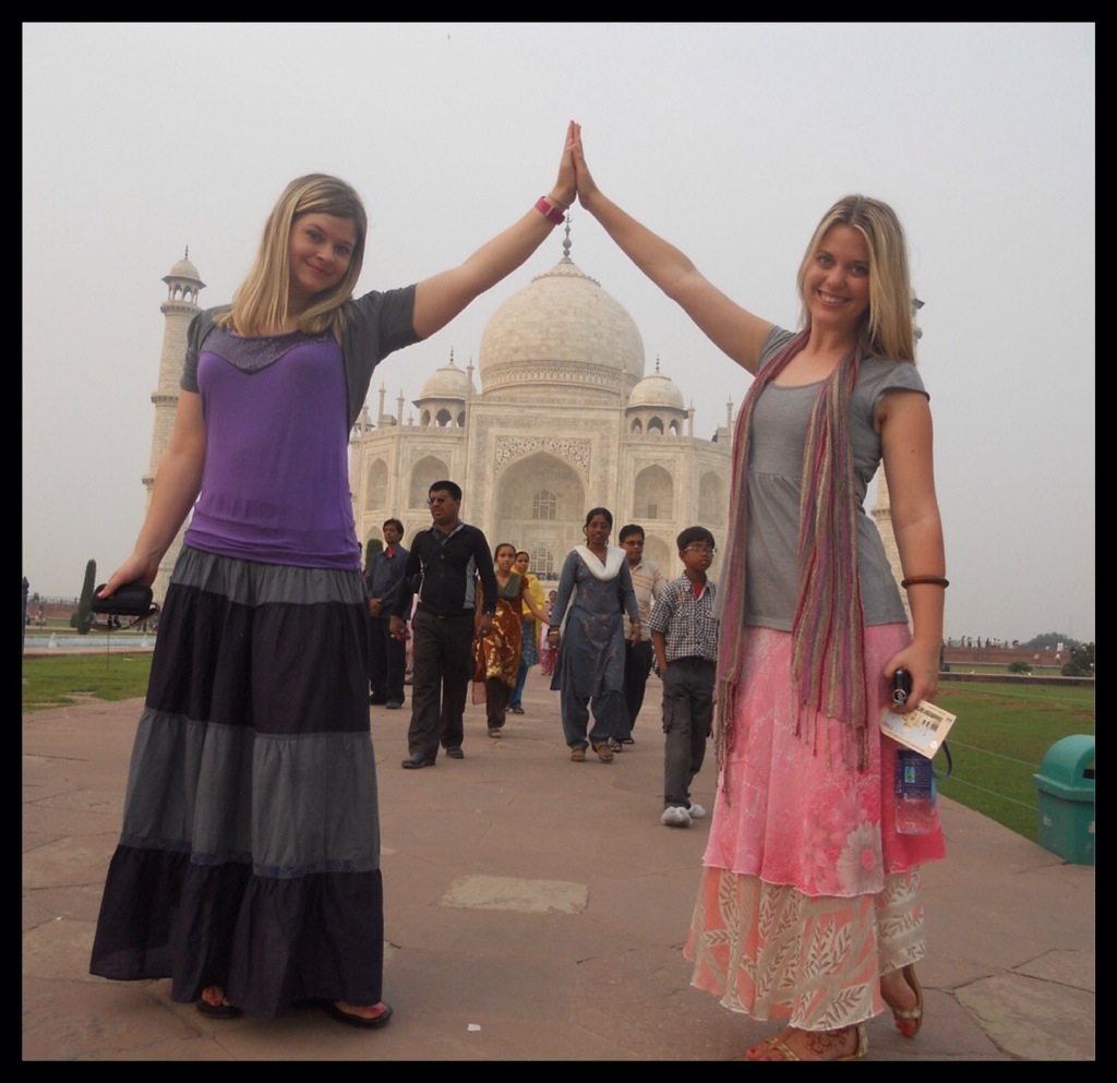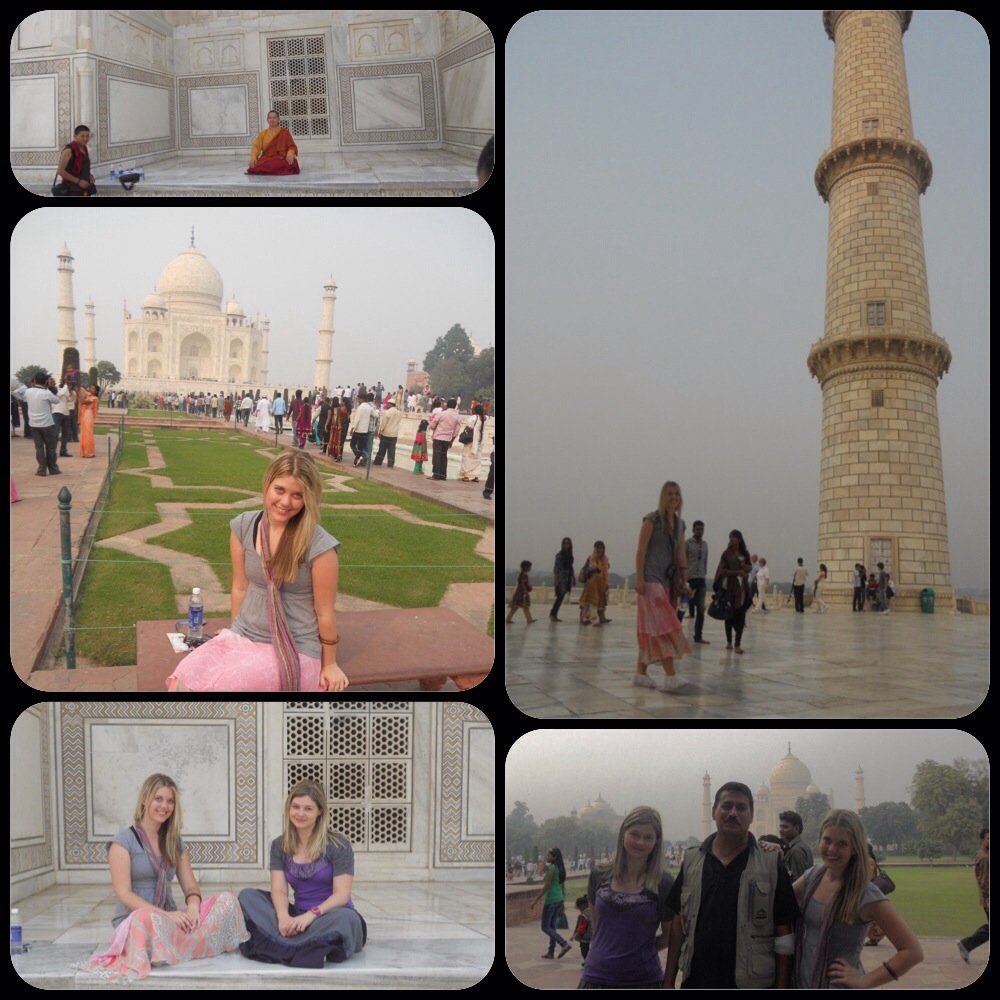 Anyway, we rode on a horse drawn carriage to get closer to the Wonder. There were A LOT of people! Indian citizens pay much less to enter.(which is fair.) On that day at the Taj Mahal there were so many different types of people all in one place! Indian folk, black people, Chinese, monks in orange gowns, Muslims covered in black cloths, indian women adorned in saris and jewels…. And everyone came to see and experience the same thing…the Taj Mahal.