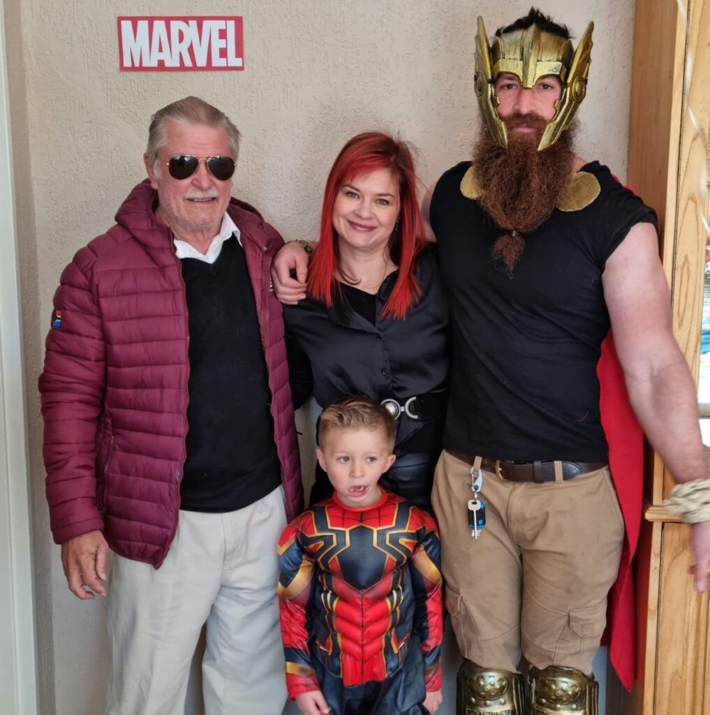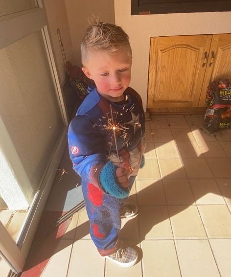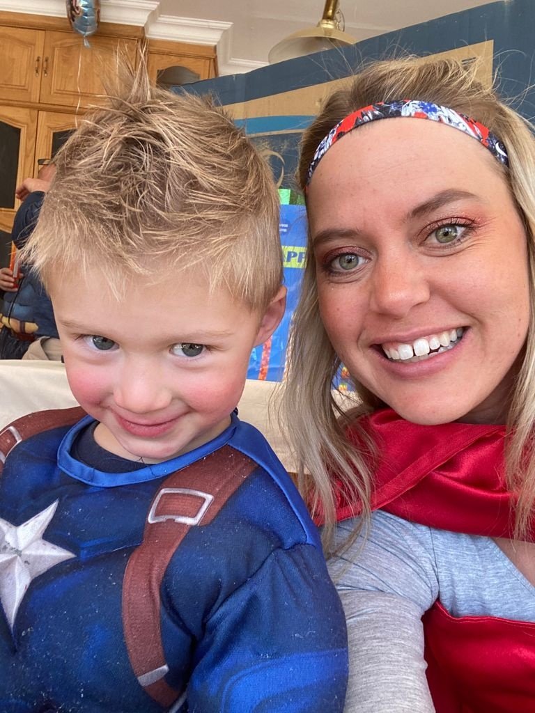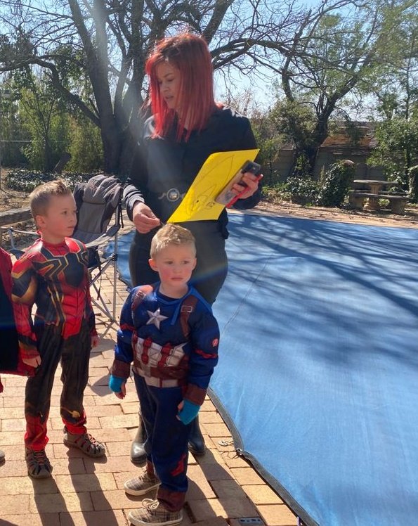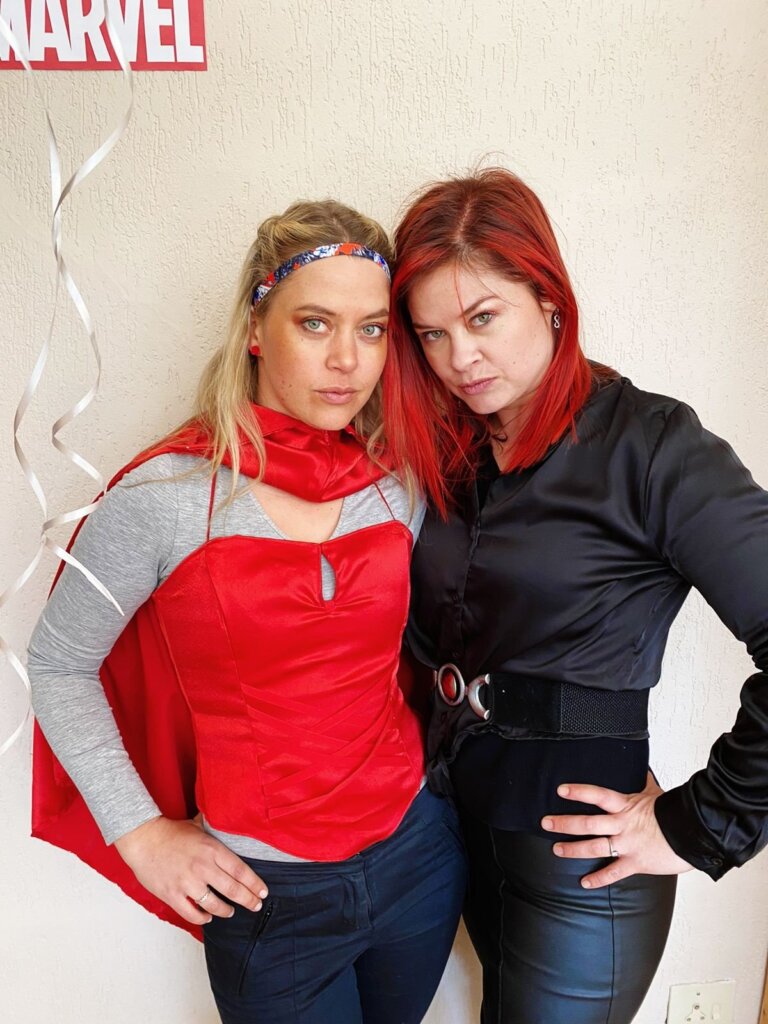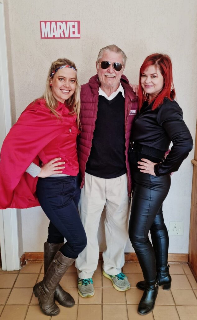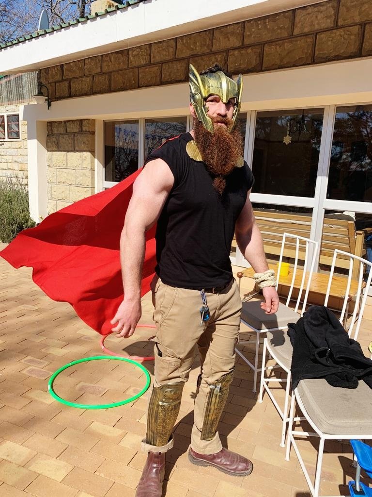 Leo was spiderman (the Avengers version), Natey was captain America, Marcus was Thor and I was Black Widow. The oupas and oumas were Cat-woman, Stan Lee, Captain Marvel, Batman, Storm and Captain Covid. Linley was Scarlett Witch.