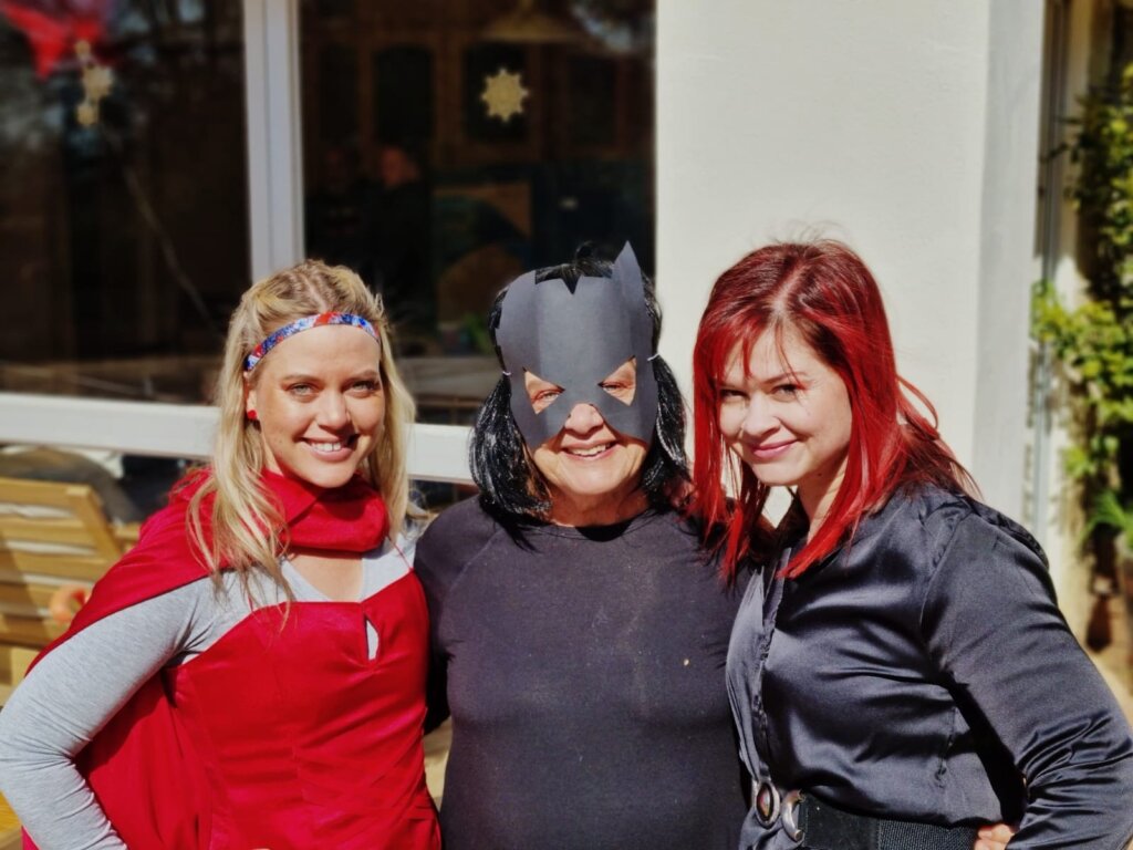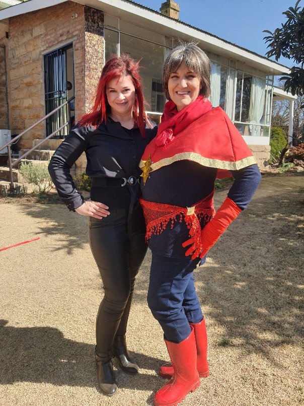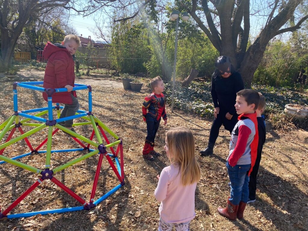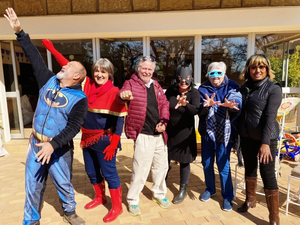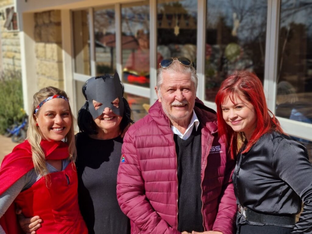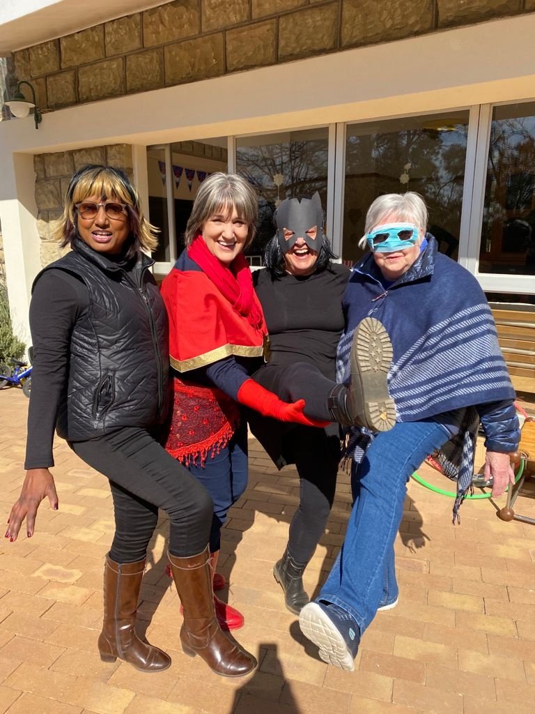 Leo was spiderman (the Avengers version), Natey was captain America, Marcus was Thor and I was Black Widow. The oupas and oumas were Cat-woman, Stan Lee, Captain Marvel, Batman, Storm and Captain Covid. Linley was Scarlett Witch.