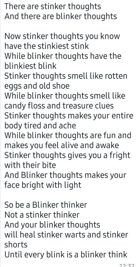This week we took time to think about some of our thoughts and listen to some of our feelings. Thoughts and feelings are constantly changing and it’s awesome if one is able to express this through writing, sport, music, dancing and art…