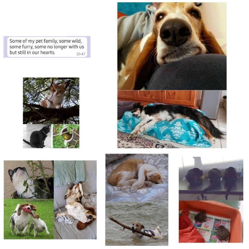 This week we focused on our love for animals. I noticed there are a lot of animal lovers in our group. It was nice to see all the animals which are loved and cared for and the amount of comfort and love they in turn provide to their owners.