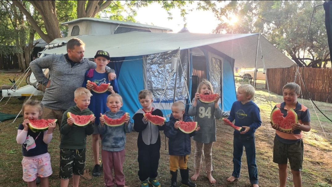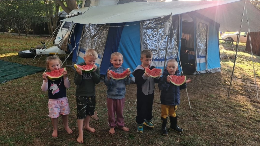 We were worried about our caravan making it on the gravel road on the way to Moolmanshoek but the gravel road is a hundred times better than the actual tar road. The road between Ladybrand and Clarens is really in a terrible state at the moment…potholes are everywhere. Maggie and Simon’s axle of their caravan even broke from the bad state the road is in… It wasn’t a great start for them but the fix-it-up team came to their rescue and they got to the camp and back home safely.