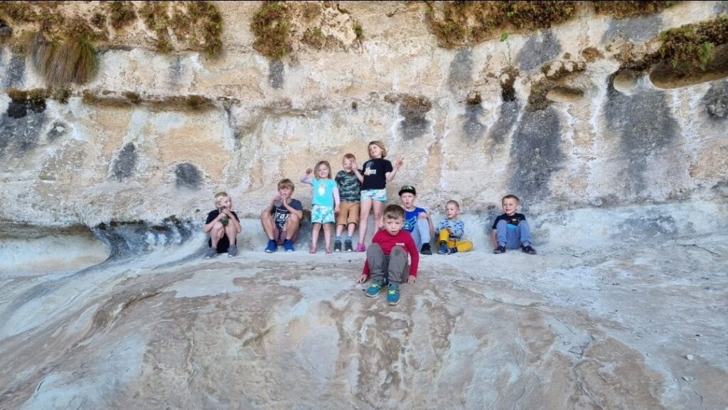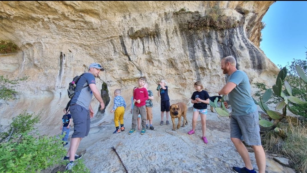 We went for a hike up the mountain to a sandstone cave. The kids really enjoyed it and I was so impressed with their climbing skills and stamina. The venue’s dogs joined us on the trail. Their pug, which we called Frank, seemed to be having a tough time and sounded like he was having constant asthmatic attacks. But he survived. (Although we didn’t see him again for the rest of that day.) Zoe, who is 4, did the whole trail barefoot which was indeed very impressive!