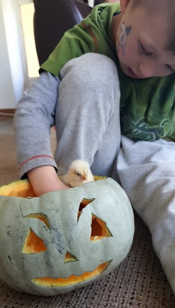 Our new chick: Little Lie Lazarus (named by Leo and Grandpa Jeff… I will write about her story sometime)