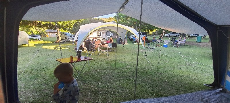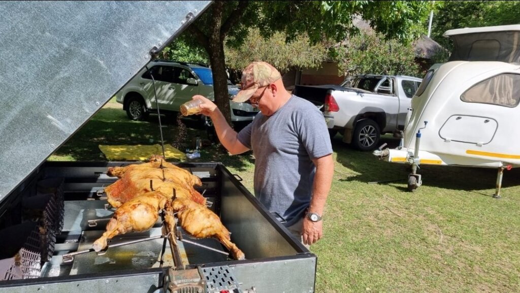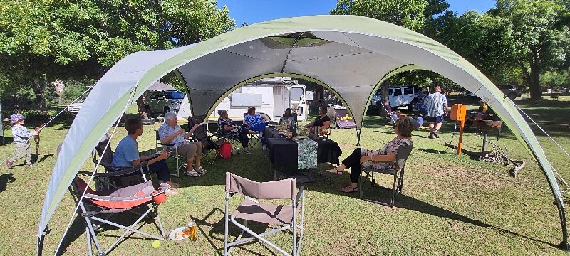 Oup arranged the spitbraai and Carol organized the snacks and salads. There was beer and gin&tonic on tap. They set up their caravan and friends joined the camping festivities. Granny Geets and the Barkhuizens even camped with even though they were about 1km from their homes.