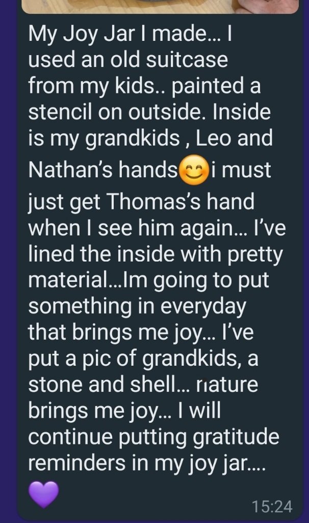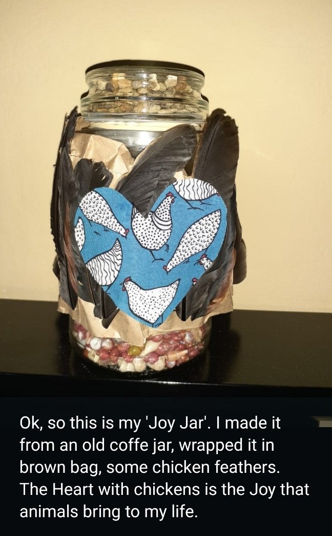 Week 1’s Challenge was to make a “Joy Jar” which is a gratitude jar/box/suitcase/plate/thing in which to record one happy thing that happened each day for the rest of the 8 weeks.
