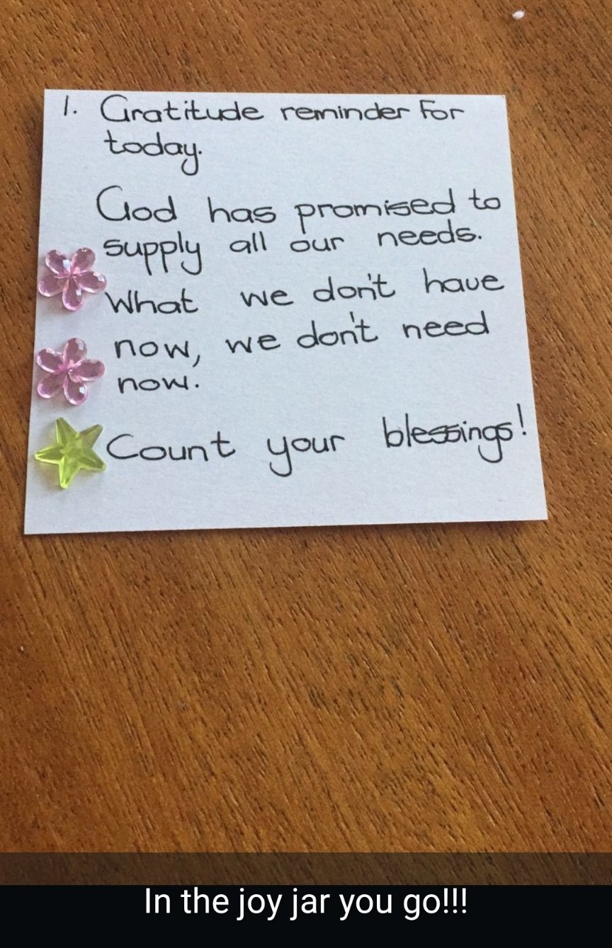 We are one week into our creativity challenge. Well done to everyone who made the effort to make their “Joy Jar.” Now try to remember to write something you are thankful for every day for the rest of the 8 week challenge and add it to your gratitude jar. May it remind us to count our blessings!