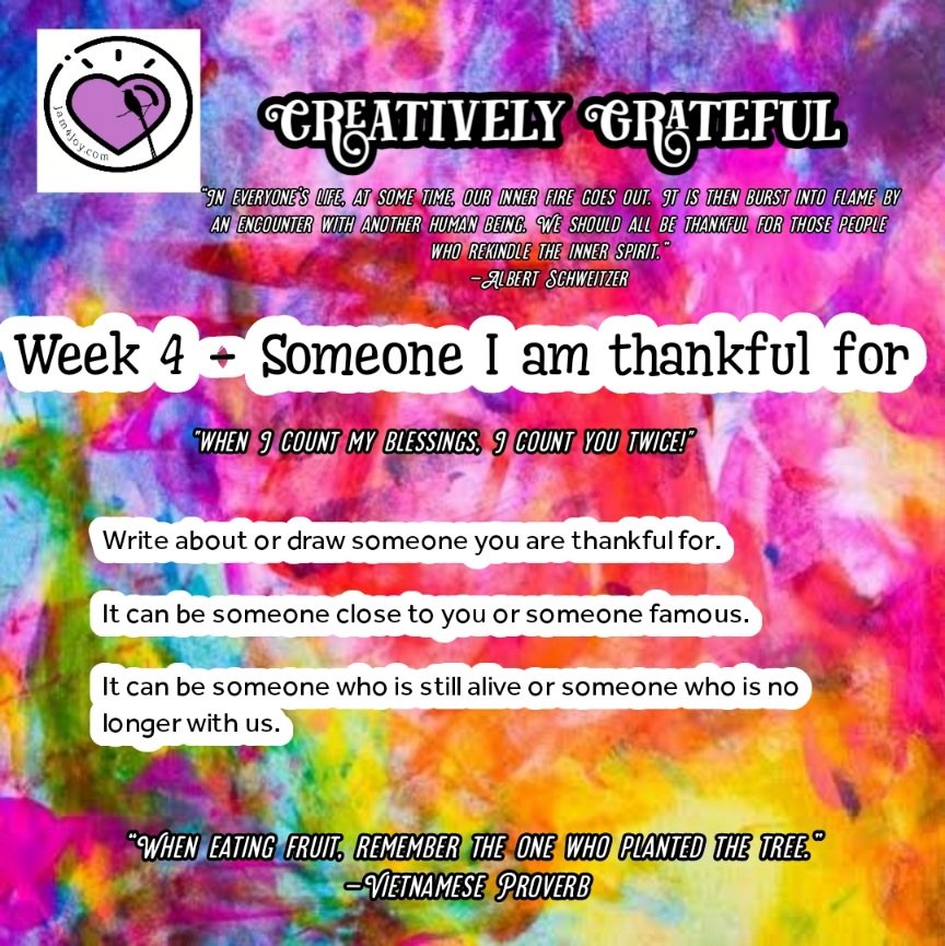 It was a meaningful week for me as I reflected on the people that have had a positive influence in my life. It was also special to see everyone’s creative tribute to the people in their lives.