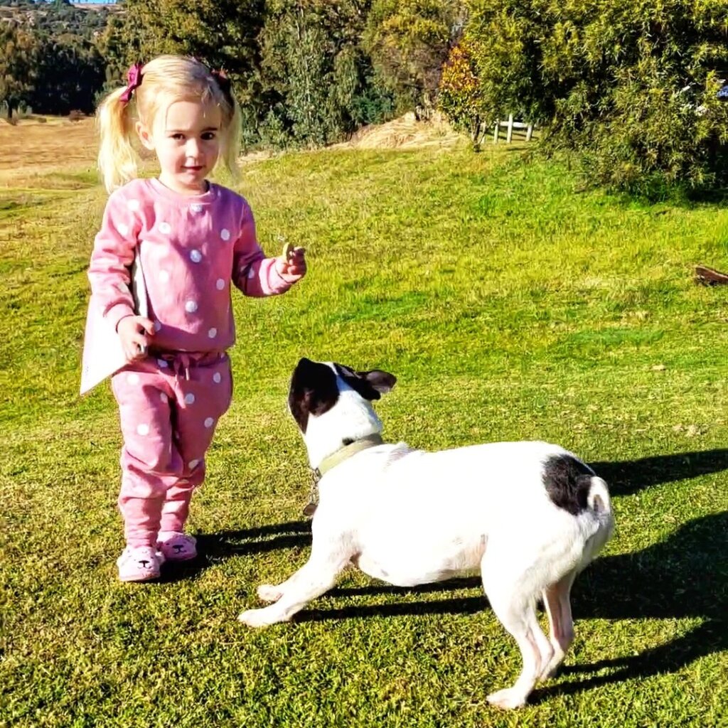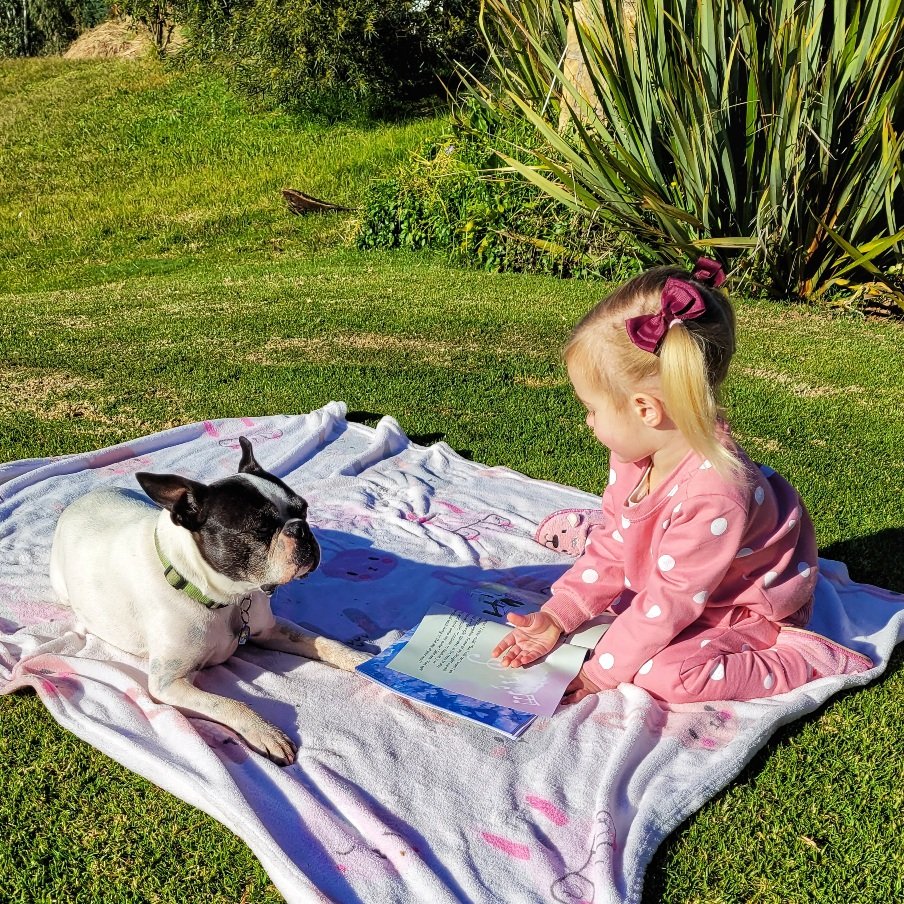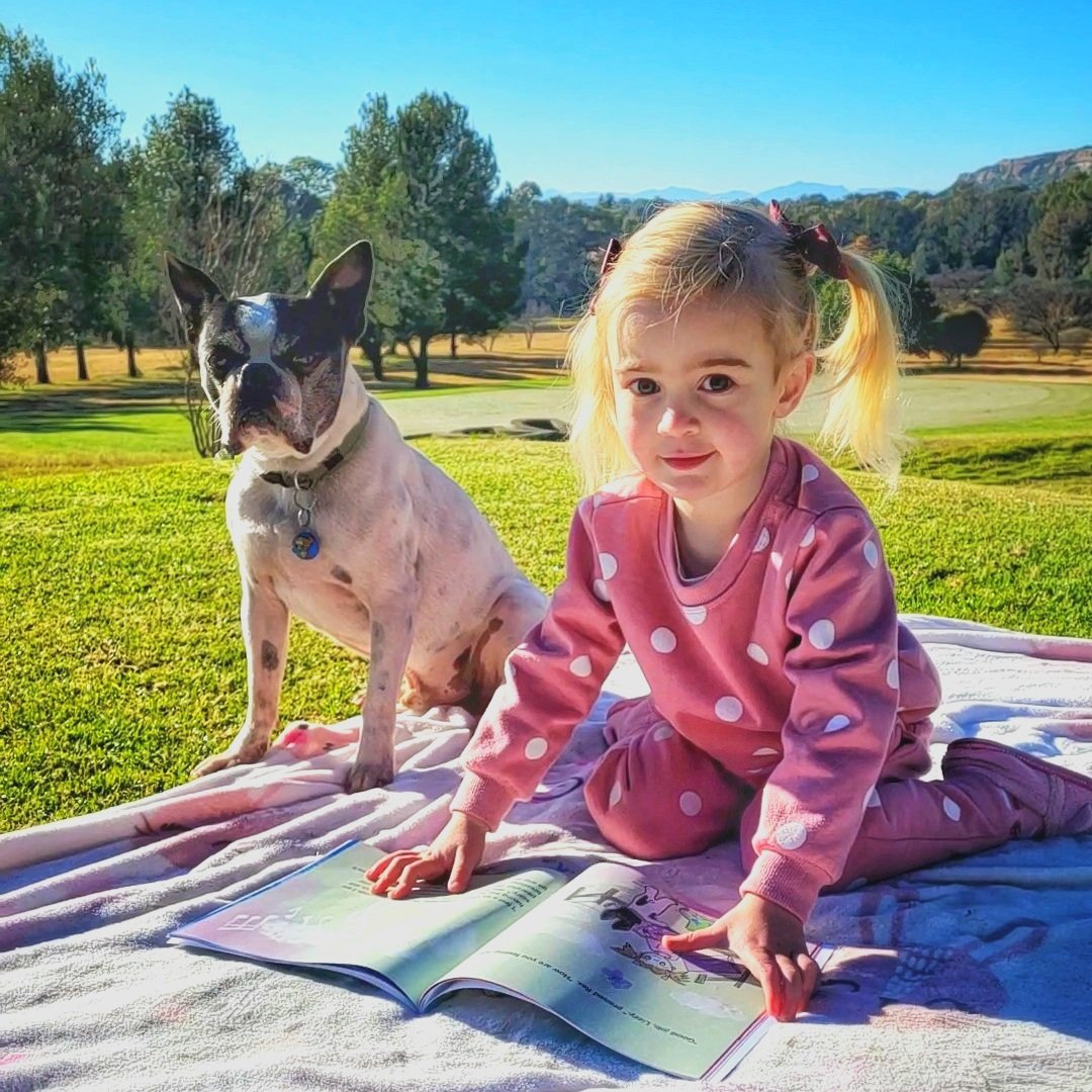 Lizzy is based on a real Lizzy who is really very cute and clever! Thank you to her mom, Chantal, for dressing her up in her pink tracksuit for photos with Rex in the cold this morning!