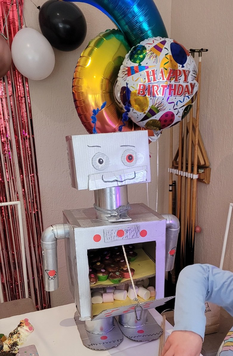 The making of the birthday robot.