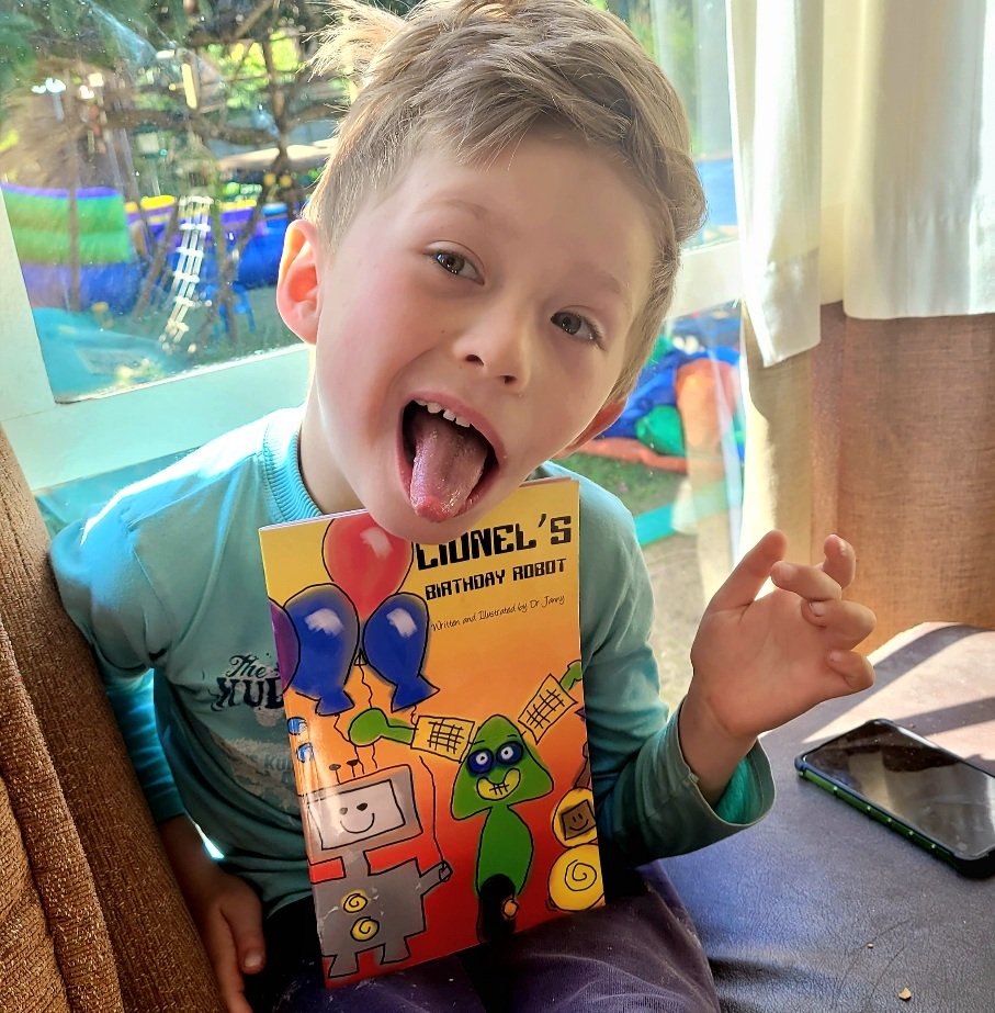 A few months ago Leo told me he would like a robot party. I asked him, if he could make a robot, what would his robot look like and what would it do. His answer was so thoughtful that we not only planned an actual robot party for his birthday, but I decided to write a book about it too. (Published via KDP and available on Amazon.com and Takealot.)