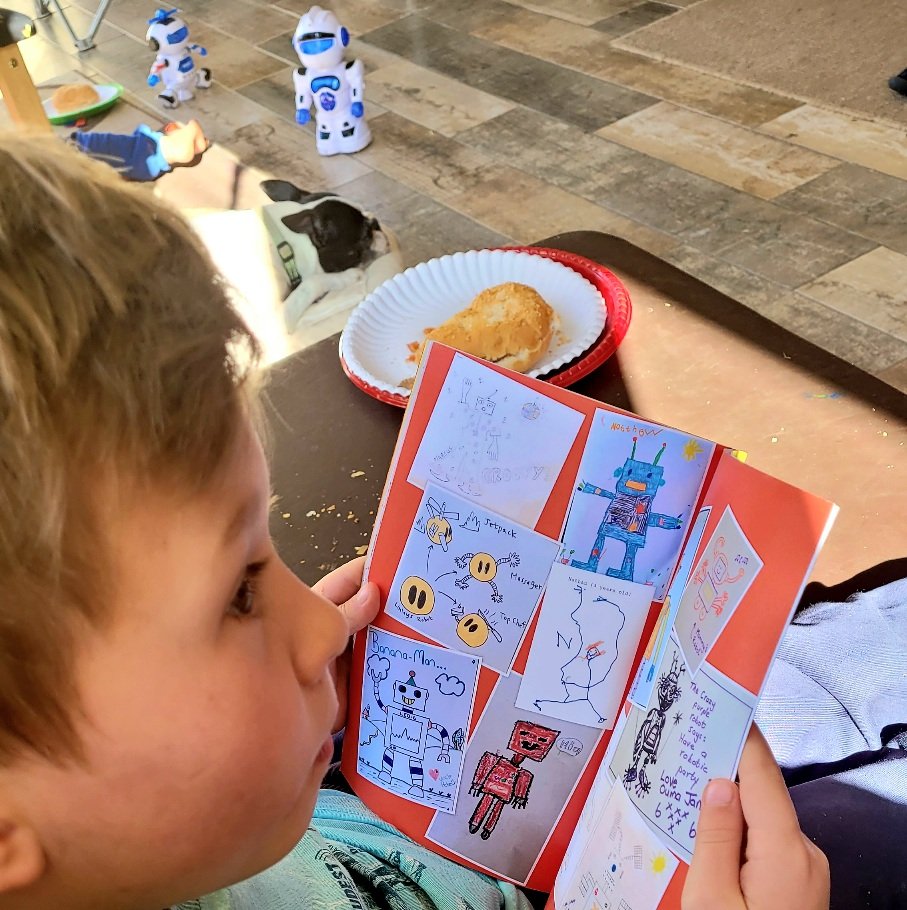 Friends and family drew their robots which I added to the front and back of the book.
