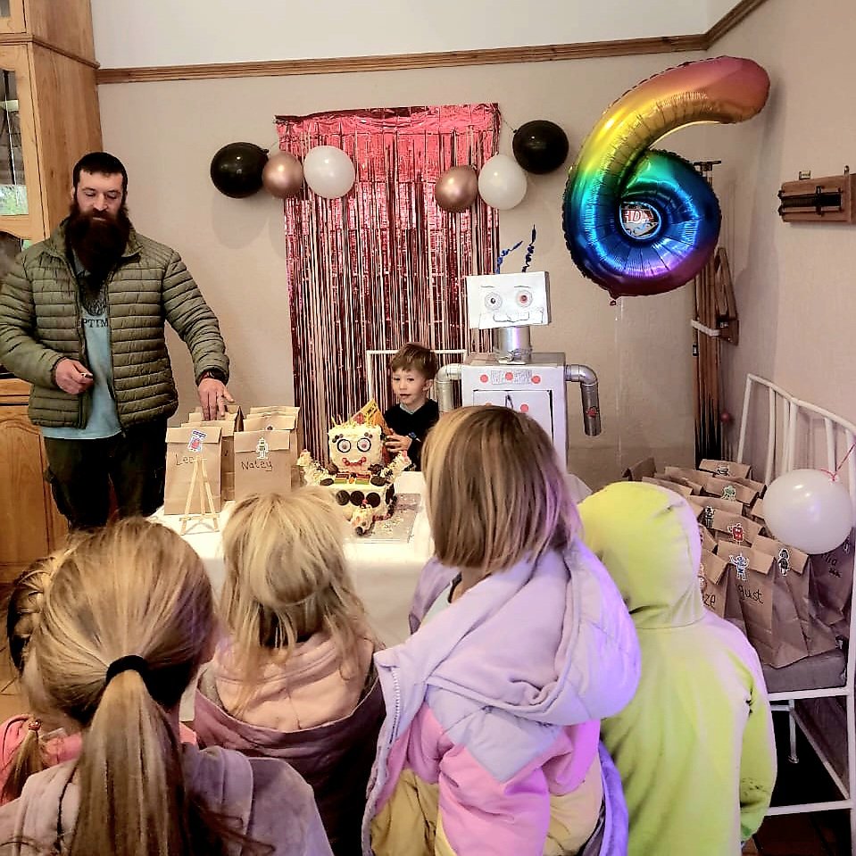 Beep bob boop boop beep beeby boop bop! (That’s robot for happy 6th birthday!)