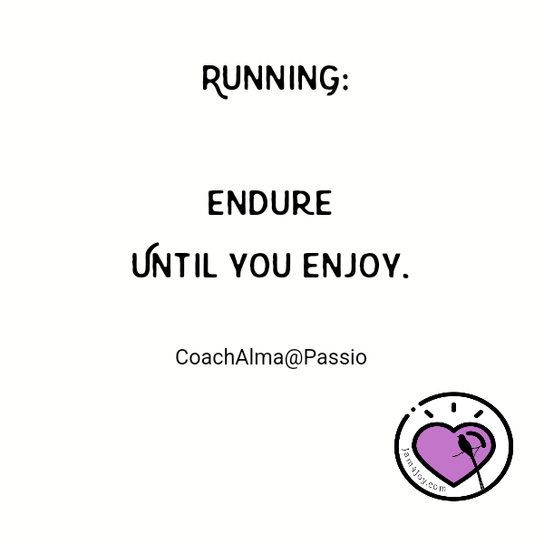 Alma told me the other day, while running you need to Endure until you Enjoy… It is tough, but when you endure through that toughness, that’s when you get stronger and fitter and, believe it or not, eventually you’ll actually enjoy it!