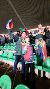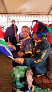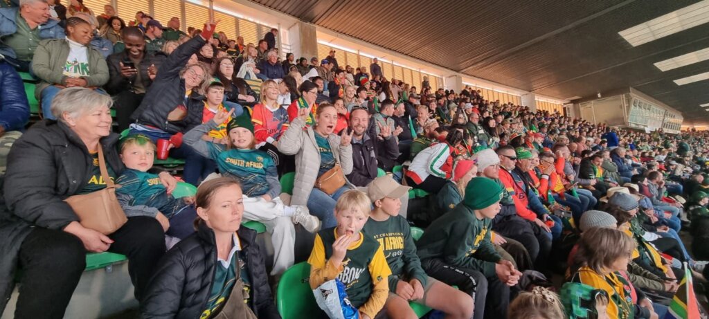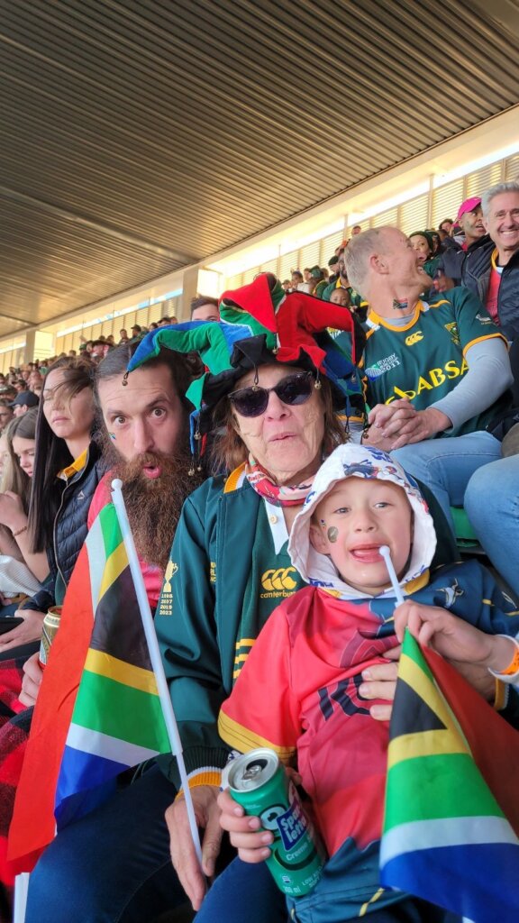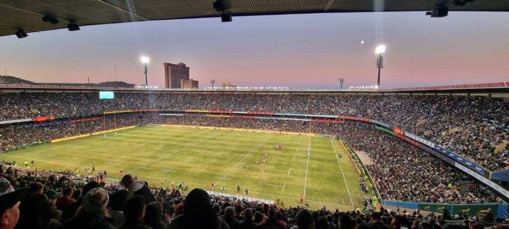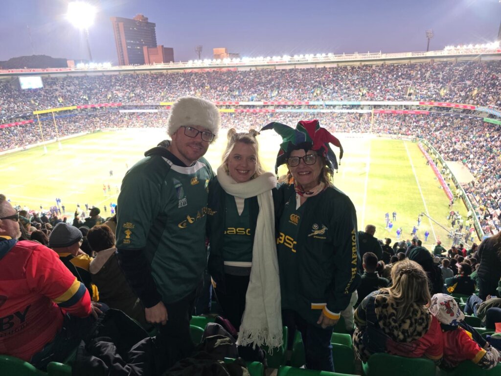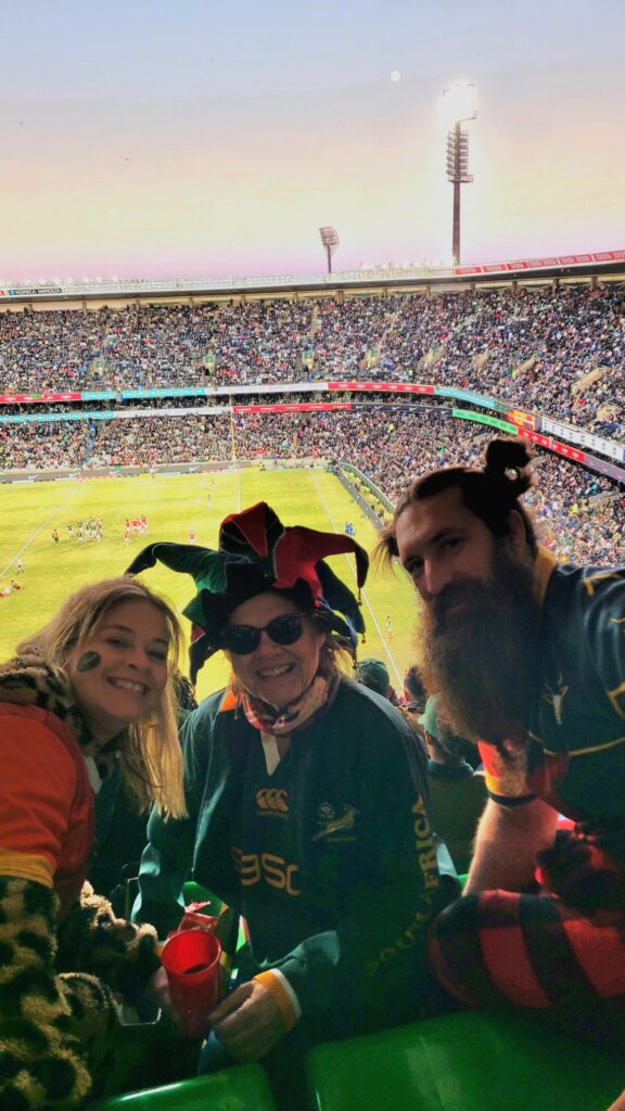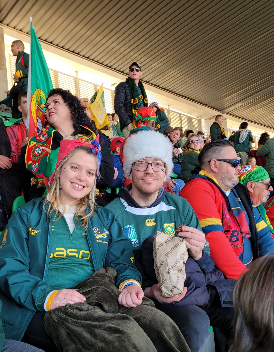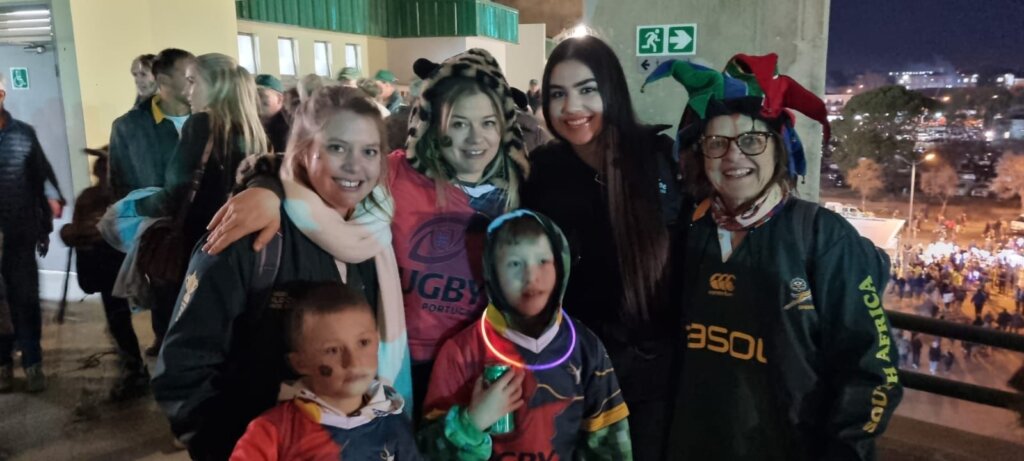 The rugby was fun! There were sooo many people at the stadium and well known singers like Van Pletzen and Biggy! It was full moon and such a vibrant atmosphere. South Africa defeated Portugal but the Portuguese did have a few impressive moves. And so many supporters!