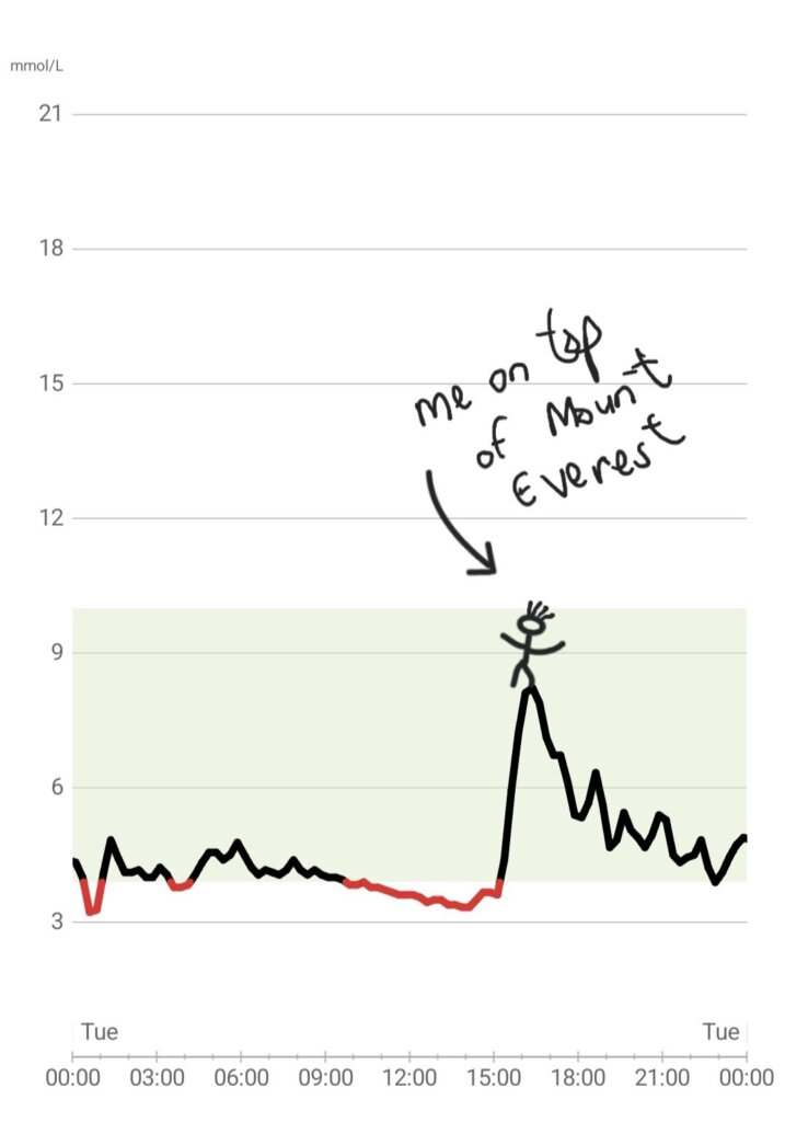 Despite not exercising as much as usual, my fasting glucose levels (the ones when I first wake up) were consistently lower than before. That really surprised me. I also noticed that low-intensity movement—like walking or light stretching—had a significant positive impact on my glucose levels. My glucose was much more stable on a day which I went for a short walk. We hear it over and over again… that you should move more or that exercise is good for you, but when one sees it on the glucose monitor, it just makes it more concrete.