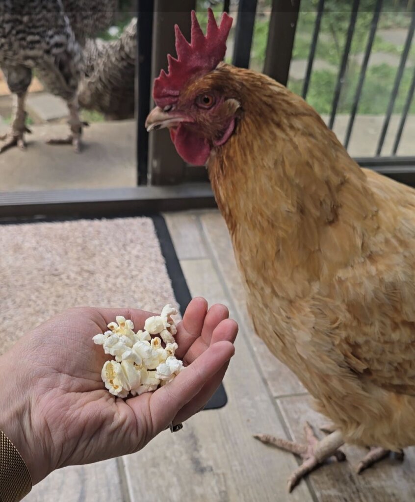 Chickens like popcorn too!