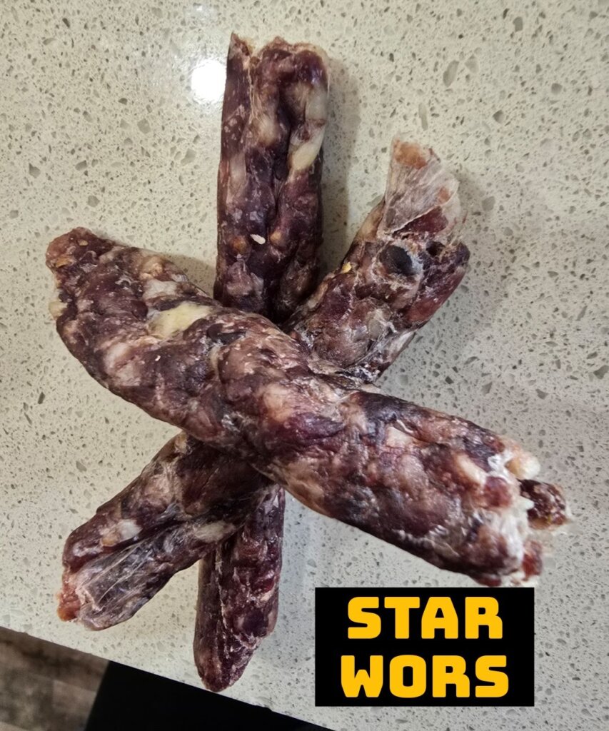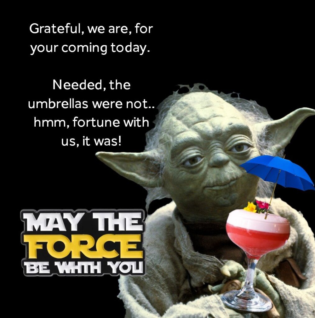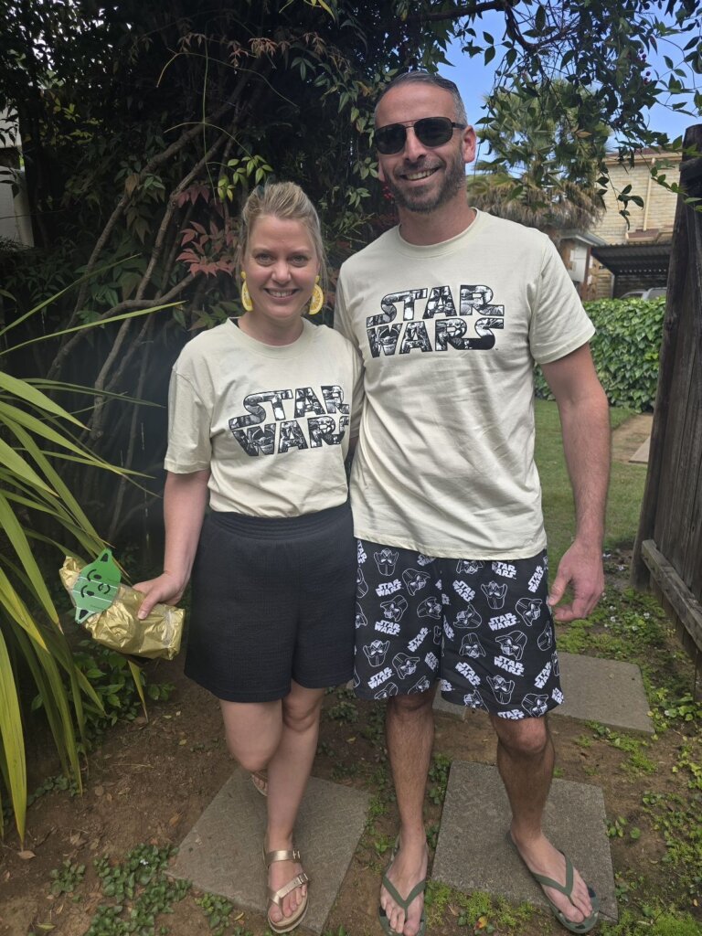 Look how cool these two are in their Star wars outfits. And the Yoda “Let the sauce be with you” prezzie