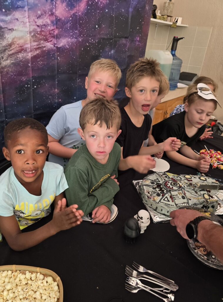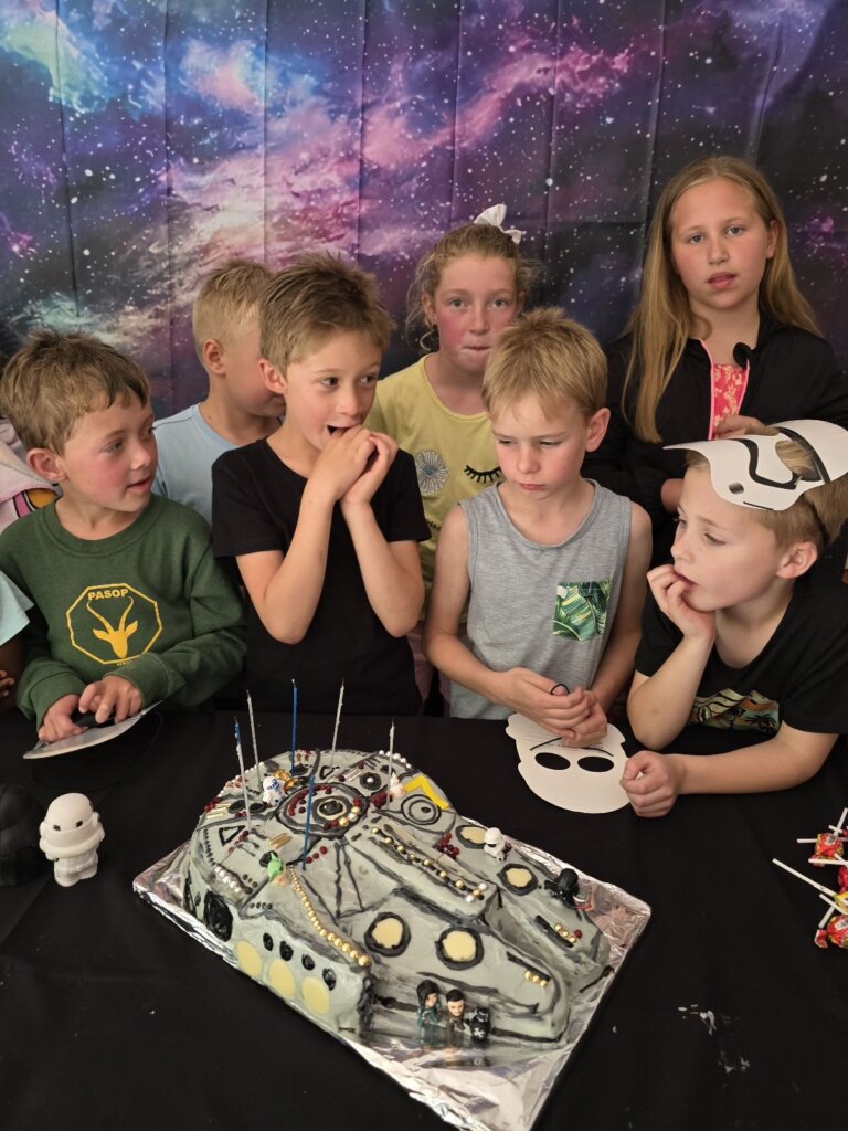 We really went all out celebrating Natey’s birthday this year. We started the school holidays with a bang and had a big party with a gigantic slide and a spitbraai. Natey chose a Star Wars theme and basically invited his whole class. Luckily, it is a small one.