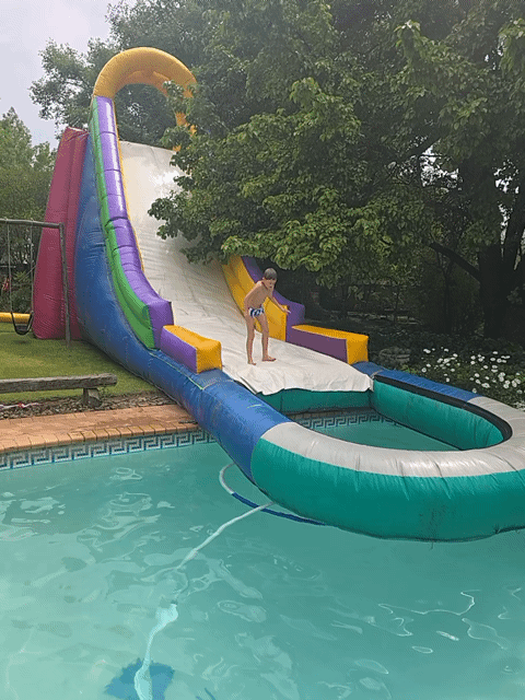 The kids had the best time swimming, sliding, and testing the limits of pool safety. The adults spent most of the afternoon pretending to be relaxed while keeping both eyes on the water. It was comforting to know that people were ready to jump in clothes and all when needed….(Again!) Next year, there will have to be a test session before the party so that only those kids who can actually swim will be allowed to proceed.