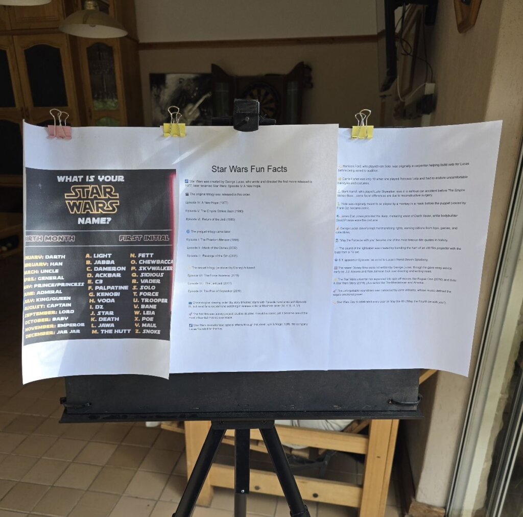 Displayed: What’s your Star Wars name? And some Star Wars Fun Facts.