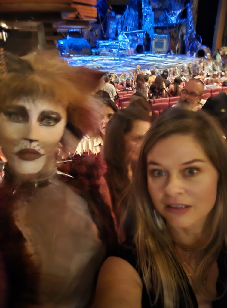 I was glad I had read a bit about Cats beforehand, because otherwise I think I might have been confused. There isn’t really a traditional plot or storyline. Instead, the show invites you into the secret world of the Jellicle cats. Each cat introduces themselves through song and movement, each with their own personality, quirks, name, and energy… The mysterious one. The playful one. The dramatic one. The forgotten one.