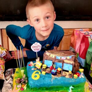 The cake was a Chocolate and Vanilla Cake with Cream cheese icing. The SpongeBob figurines are “fishtank figurines” and are not edible. The Krusty Krab is made from melted chocolate. This is the…